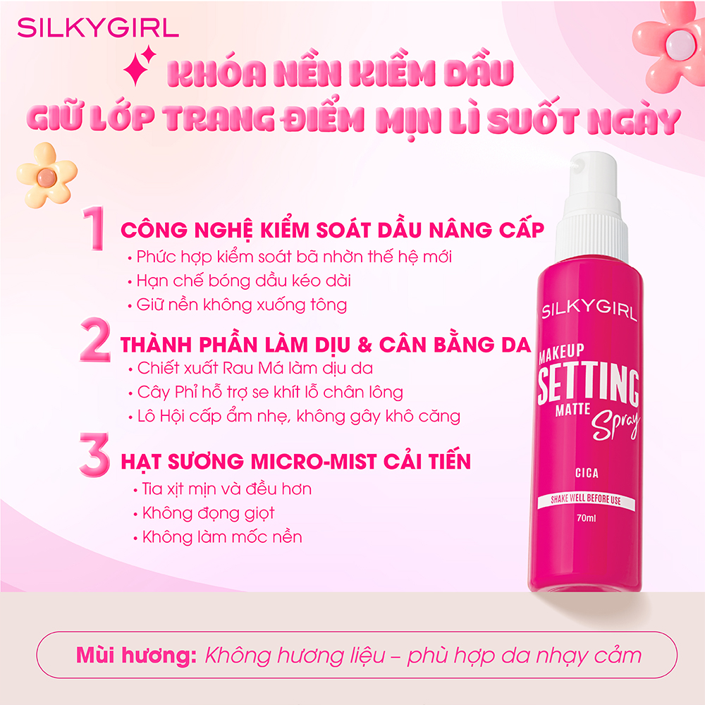 Xịt Khóa Trang Điểm Kiềm Dầu SILKYGIRL Makeup Setting Spray Matte 70ml